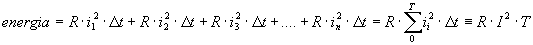Se si desidera il rigore occorre sostituire alla sommatoria l’integrale esteso al quadrato della corrente in esame, espressa con una equazione ad esempio del tipo