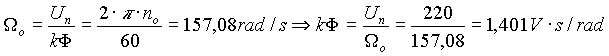Tn = k Φ ·In=1,401 · 25 = 35,02Nm,
